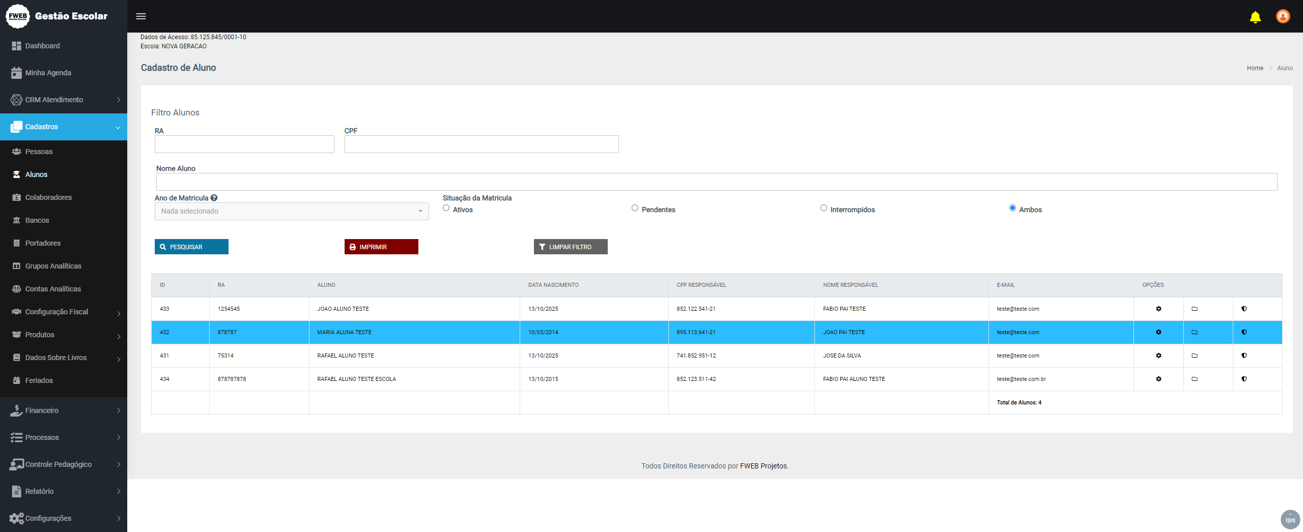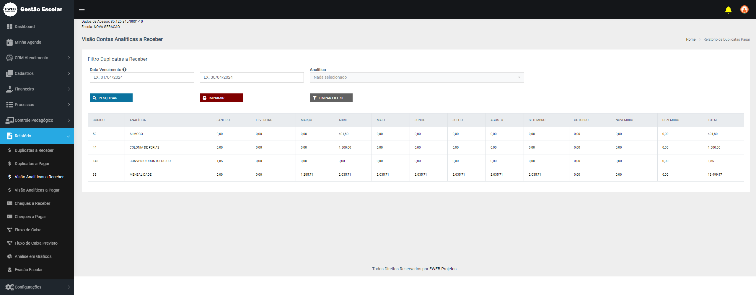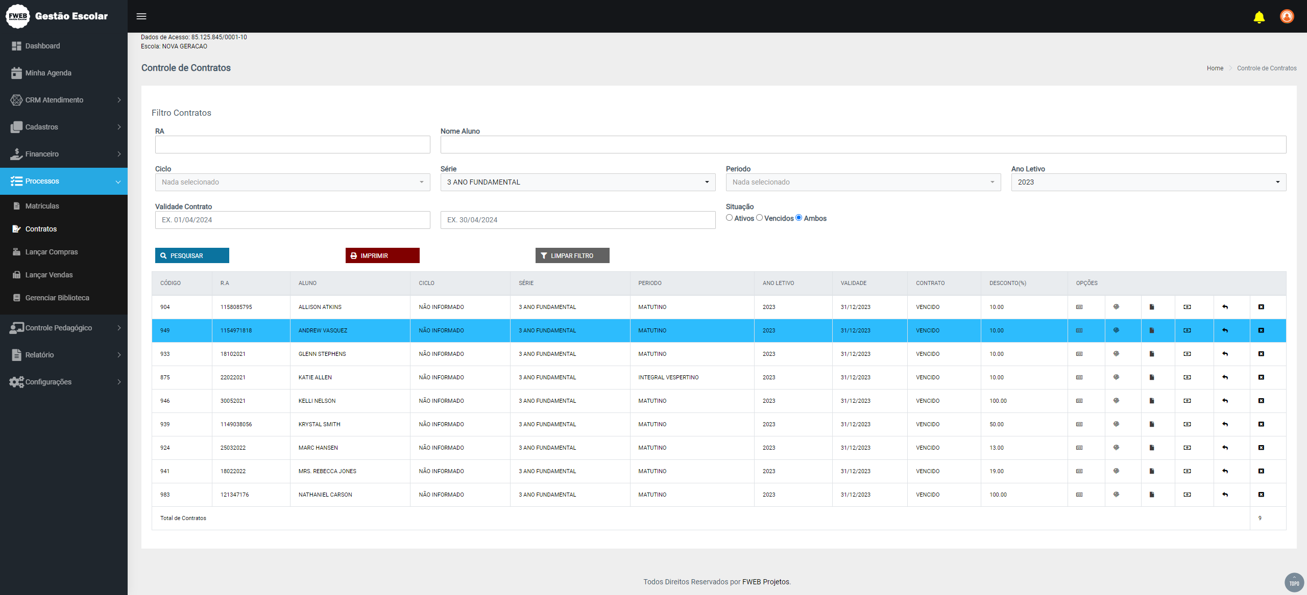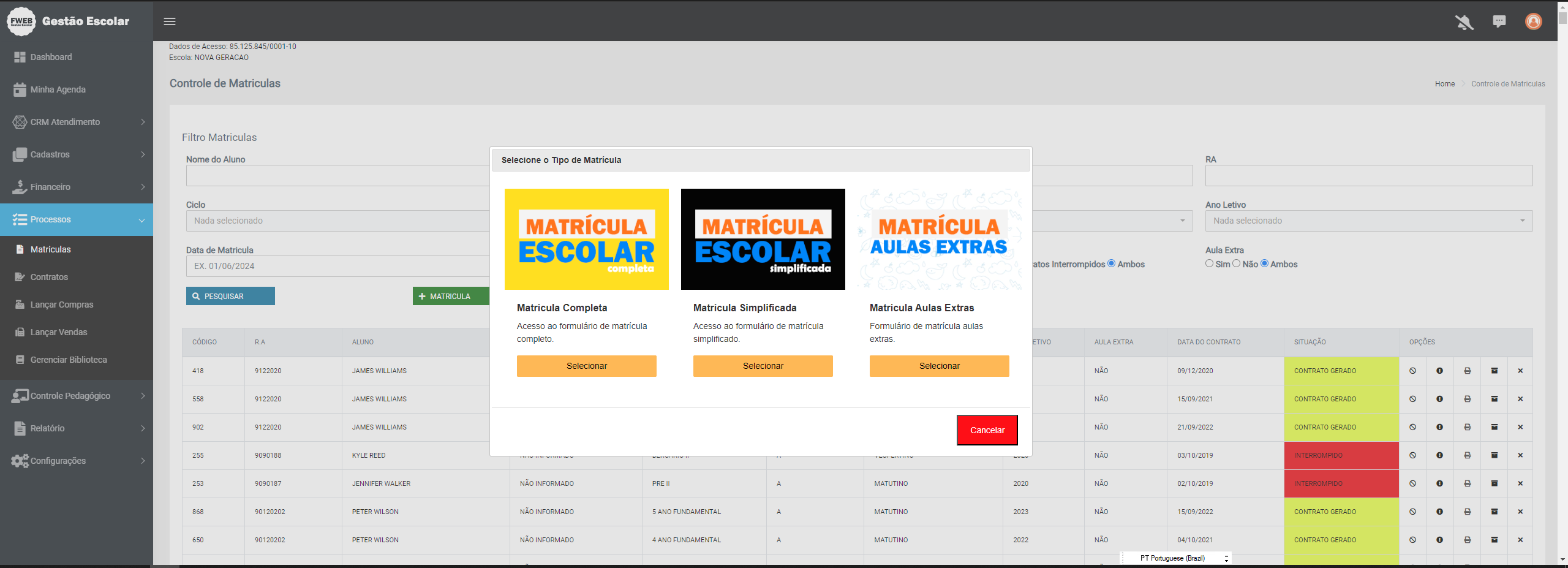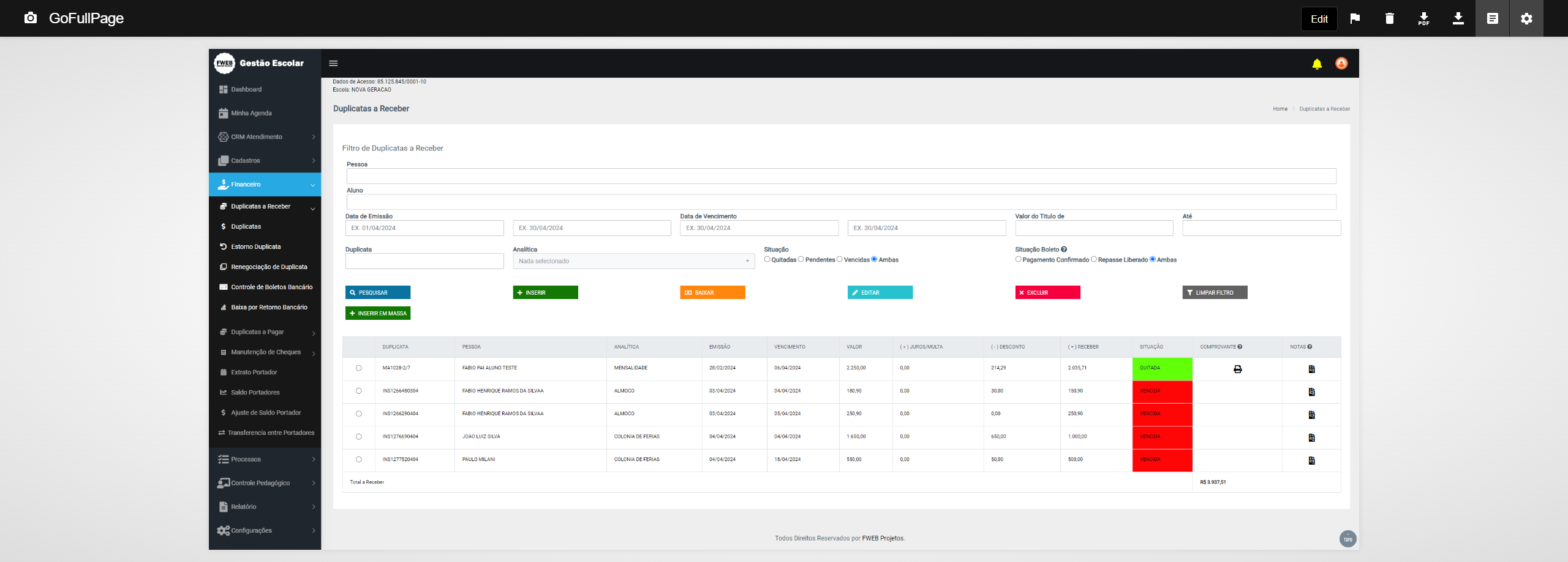 e Gestão Escolar Projetos - Sistema de Gerenciamento Escolar Online