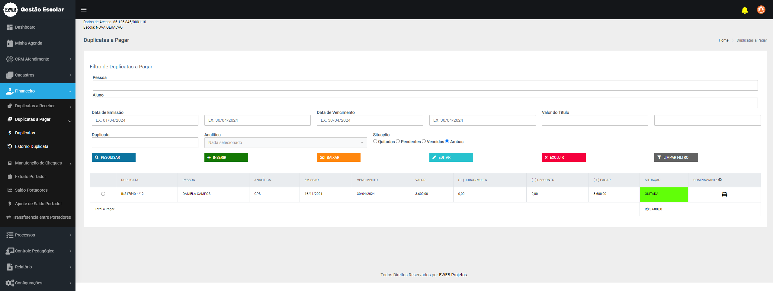 - Controle financeiro mais efetivo: O e Gestão Escolar permite o controle financeiro da escola, o que ajuda a evitar atrasos e erros no pagamento de contas, além de possibilitar uma melhor gestão do orçamento da escola.